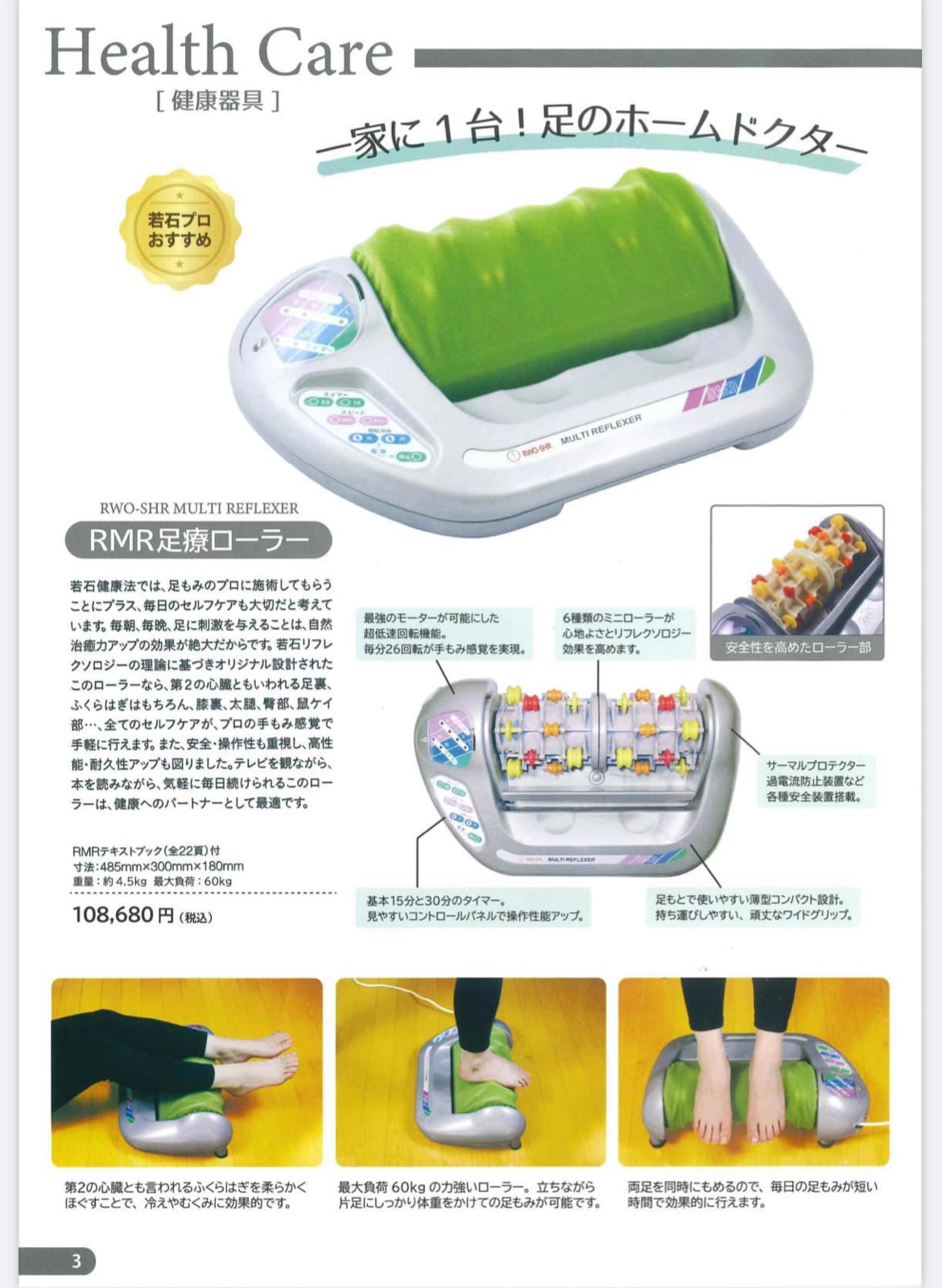 若石RMR足療ローラーは、プロの足もみ師が揉んだのと同等の効果が得られる、究極の足もみローラー!WHOが認めた若石健康法の理論に基づいて開発された、強力なマッサージ機で、冷え症の方の強い味方です。1日わずか15分、自宅で本格マッサージが受けられます。